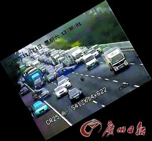 2015年11月21日13时25分左右,广州交警接到群众报案,称在机场高速南行18公里+622处(介于平沙跟蚌湖之间)发生一宗两小车碰撞的交通事故,其中一辆小车的驾驶员被困车内,导致该路段交通出现缓慢。接报后,广州交警迅速前往事故现场进行处置工作。