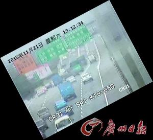①监控视频记录下两车在车流中穿插追逐的瞬间。