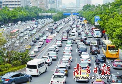 7日下午,广州大道中南北双向车道车辆行驶缓慢,出现大塞车。肖雄 摄