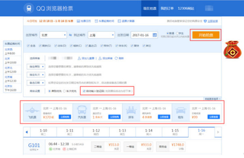 QQ浏览器能够高效识别12306的图片验证码并全自动刷票,因此用户只需在登陆后填写车站和出行日期、勾选相应选项,系统即可自动刷票,无需亲自操作,省时又省力。