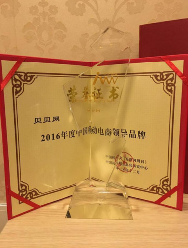 中新网12月22日电 12月16日,2016(第十四届)中国互联网经济论坛在北京开幕,会上揭晓了本年度金i奖的获奖品牌,贝贝网凭借在移动互联网的卓越表现、创新的商业模式,荣获了“2016年度中国移动电商领导品牌”。