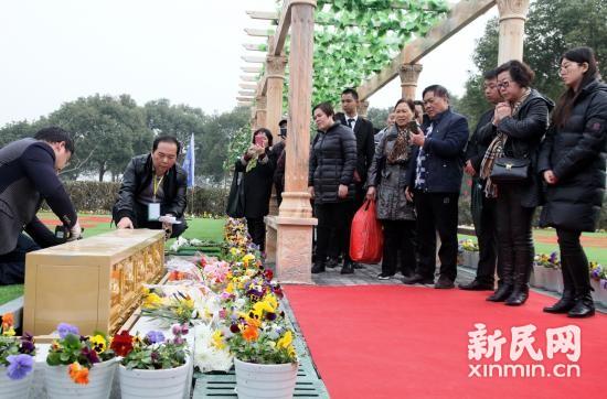 【新民晚报·新民网】12月19日上午,一场以“绿色、节地、公益、科技、互联网”为主题的“福佑苑升降式花园葬”落成及集体下葬仪式在上海市金山区松隐山庄举行,首批落葬的11户家庭来到墓葬墙前了却心愿。据悉,这种“升降式花园葬”尚属全国首例,其在遵循“入土为安”传统墓葬风俗的同时,大大提高墓园土地使用率。