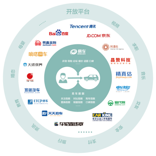 易车正基于汽车这一垂直行业的数据优势,积极开放、融合更多平台,构建新型跨界的汽车营销数据生态。据了解,易车网精准用户覆盖人数超过8000万,2016年第三季度为汽车客户带去超过2700万的销售线索,其中来自移动端的销售线索占比接近75%。2014年,易车与中国电信、艾瑞、携程、智联招聘、新东方等单位联合成立中国企业大数据联盟,并担任理事长单位。目前,易车正进一步与京东、腾讯、百度等战略股东,20多个汽车行业相关投资公司打通数据,最终实现汽车市场数据、精准人群数据、金融交易数据与网购、社交、出行、信用、浏览等网民行为数据的融合。