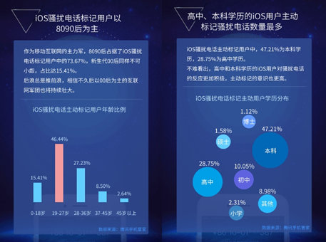 (图:iOS骚扰电话标记用户以8090后和高中、本科学历人群为主)