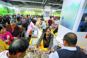 记者在现场看到,中老年群体成为光临此次农博会的主力军。在各个摊位前,大批中老年顾客都在产品供应区的摊位前试吃、购买,忙得不亦乐乎。