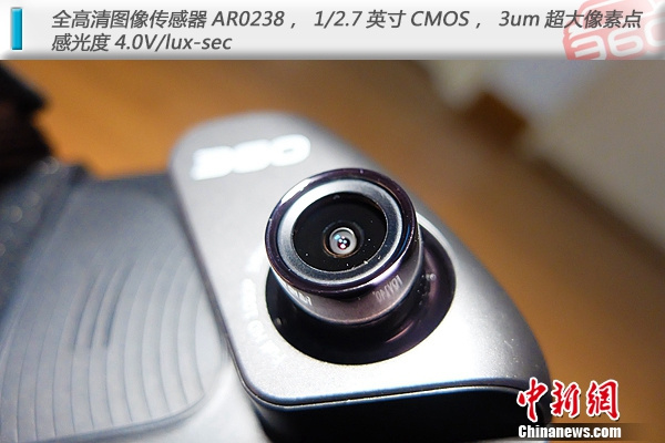 360行车记录仪后视镜版配置了1/2.7英寸CMOS全高清图像传感器AR0238,3um超大像素点,感光度4.0V/lux-sec,可支持1920 * 1080P分辨率录影,这已经达到了一些卡片数码相机的配置水平。