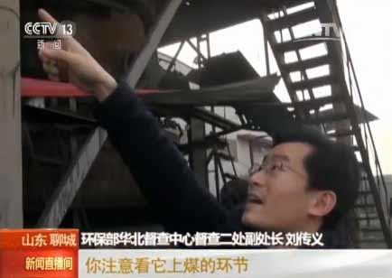 环保部华北督查中心督查二处副处长刘传义:你自己看你的车间了吧,那全是白白的灰啊。你原料都无组织扩散出来了。