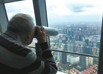 牟其中站在上海环球金融中心俯瞰上海。