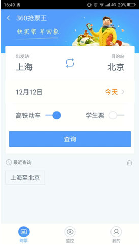 使用360手机浏览器抢票,可大大提升抢票成功几率
