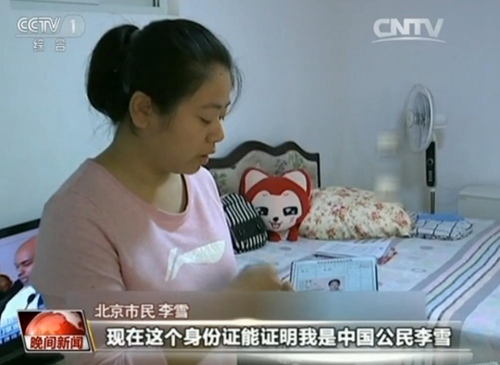 李雪:现在我这个身份证能证明我是中国公民李雪,(哭)拿这个东西就是在想以前一幕幕的事情,为这个东西做的努力这个过程是怎么多难都过来了。