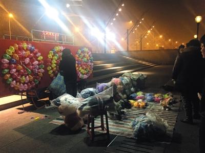 跟前一天的元旦之夜的人潮比,那晚人很少。他们从三轮车上卸下做奖品的玩具娃娃,从大到小摆在一张布单上。从布袋里掏出气球装在靶位上。