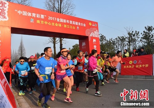 中新网衢州1月2日电 昨天上午,2017全国新年登高健身大会在全国各地举行。本次活动在浙江江山、北京八达岭分别设立南、北中心主会场,在东北、华北、华东、华南、华中、西南、西北设立7个区域主会场,其他省(区、市)各设立省级主会场,同时号召有条件的各地市和县区同步开展活动。