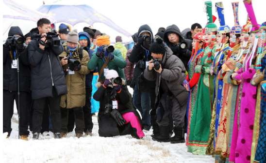 众多摄影爱好者拍摄蒙古族服装服饰