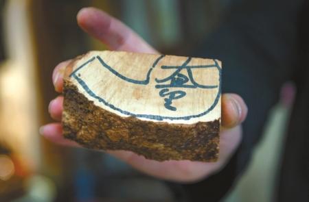 马勇手中的这块石楠树根,大师已经画好了斗形。