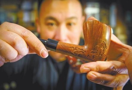宽窄巷子边长大的马勇自小就喜欢各种器物,成年后更是痴迷收藏。七八年前,一朋友从荷兰回国,送他一只大班烟斗和一盒烟草。烟瘾奇大的他当即抽了一斗,哪知苦涩不堪,他顺手丢在一边。虽然不好抽,他有空时还是常把这只斗拿来反复把玩。“东西好玩,就是因为它过程的繁琐,装烟抽斗真是一门难度颇高的技术活,是彻彻底底的慢生活,心急火燎的人是抽不了斗的。”喜欢读书的他阅读了大量书籍,“书上说烟草的味道是如何的醇厚香甜,我都没遇到,始终是个苦味!”玩了一年多,马勇还是没找到道。