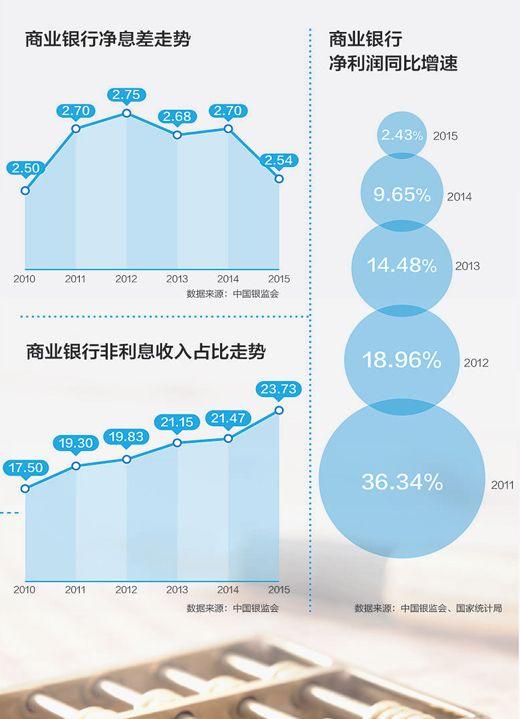 18.96%、14.48%、9.65%、2.43%,从2012年到2015年,商业银行净利润增幅走出了一条明显的下行曲线。