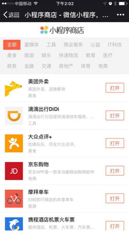 包括京东购物、摩拜单车、携程酒店等一大波互联网热门小程序都可以直接通过微信小程序商店直接扫描二维码或直接打开使用,从目前的体验看来,微信小程序确实做到了“触手可及,用完即走”的设计理念,而且启动速度极快。