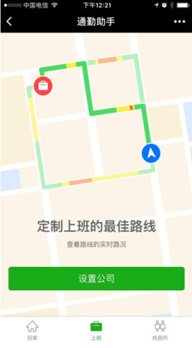 相比地图APP中的路线路况查看功能,通过小程序提供的路况订阅更加轻量直观。搜索“通勤助手”打开小程序,设置家与公司地址,即可定制上班、回家最佳路线。