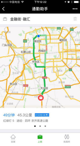 针对用户日常上下班出行过程中,希望快速查看上班回家路线路况,寻找拥堵度小的路线及出行时间的诉求。“通勤助手”提供实时路况的查看功能,着力解决上班族的痛点。