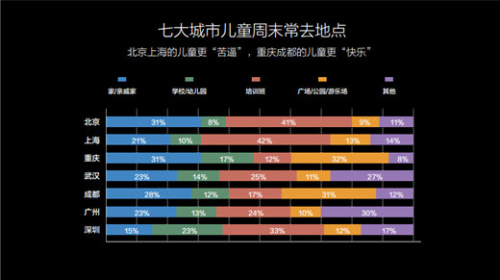 孩子的童年本该是无忧无虑的,然而很多一线城市的孩子不得不从小就面对激烈的“竞争”。在大数据报告中,各大城市儿童周末最常去的地点差异化十分明显。