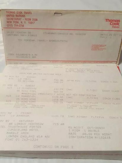 相机包里还有一份行程表,上面记录着Goldberg夫妇在1982年11月7日到了北京,旅游两周后21日从广州经香港去了曼谷。