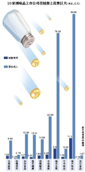 此外,10家调味品上市公司2016年半年报财务数据显示,研发投出占企业营收比重平均水平在3%。千禾味业去年上半年营收3.56亿元,研发投入为223.68万元。研发投入占比最低的云南能投,去年上半年实现营收6.73亿元,同期研发投入仅36.18万元,销售费用则达到1.02亿元。