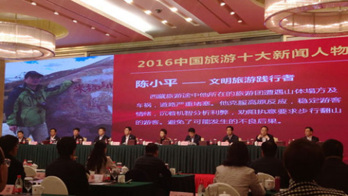 普通游客因为文明旅游被评为“年度人物”。1月12日,在在湖南长沙举行的2017年全国旅游工作会议上,国家旅游局举办了“2016年中国旅游十大新闻人物”发布仪式。携程跟团游客陈小平以“文明旅游践行者”的称号入选,排名第一。