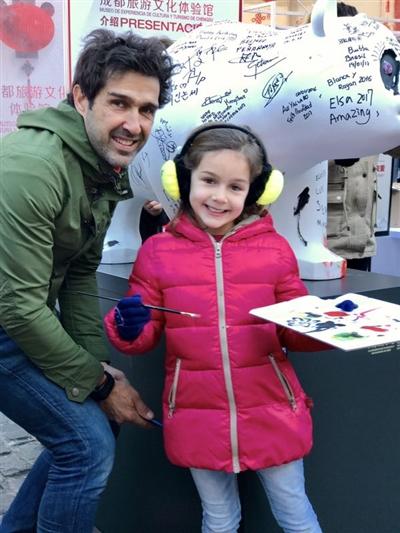 记者在现场看到,剪纸和彩绘熊猫是人气最高的项目。位于体验馆门口的白色大熊猫,如今已经被来自世界各地游人们的签名和创意绘满。西班牙女孩Maria Hernando已经连续两天来到现场。她拿着熊猫玩偶兴奋地对着记者的镜头喊道:“我爱熊猫,我爱成都!”她说,之前知道四川和成都,是因为自己非常喜欢麻辣的川菜。而这次通过旅游文化体验馆,她对成都文化有了更多了解。“我对皮影戏和变脸特别感兴趣,这些都是西班牙没有的,真是太酷了!”她说,自己现在最想做的事情就是,“立刻去成都旅行!”