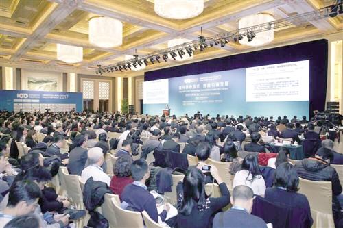 中国电动汽车百人会论坛(2017)主论坛上,嘉宾正在作主旨发言。经济日报记者 杨忠阳摄