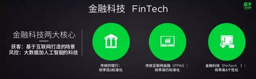 第二个,我们叫fin tech。它有两大核心,其中一个是获客,另一个是风控。