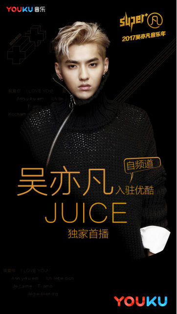 在音乐方面,吴亦凡也是齐头并进。今天下午三点,吴亦凡最新单曲MV《Juice》已经独家登陆优酷,这是吴亦凡为自己担当主演的电影《极限特工3》倾力献唱的插曲。据了解,这次MV的精良制作堪比大片儿,由《极限特工3》的导演Andy Hines亲自执导拍摄,影片主演范.迪塞尔更是惊喜出演。MV中的两辆太空感的豪华座驾和数辆帅气机车摩托助阵,为整首单曲增添质感与品位。