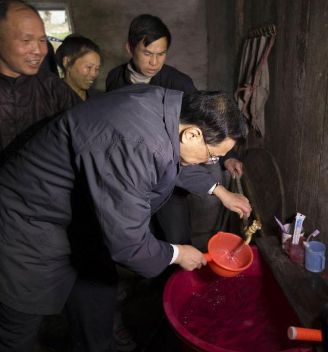 2月13日,他走进贵州黎平县蒲洞村贫困村民吴龙乾家简陋的厨房,拧开水龙头,用水瓢接水细细察看水质。总理叮嘱有关负责人:让山区群众喝上安全放心的饮用水,这是政府的硬承诺,绝不能打折扣!