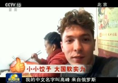我的中文名字叫高峰,来自俄罗斯。在中国过第九个春节,我特别喜欢吃中国各种好吃的,尤其是我特别爱吃饺子,我妈包饺子挺好吃的。