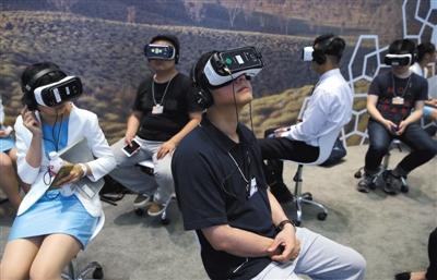 2016年6月25日,天津梅江会展中心,世界经济论坛第十届新领军者年会即夏季达沃斯论坛,“流动的创意”主题展区,观众在体验VR虚拟现实电影。新京报记者 薛珺 摄