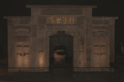 馆内打头的文物是一座明代的“科第世家”石门楼。这座三开门式门楼,为明代开科第一位从南京走出来的状元吴伯宗家族所有。它采取的都是典型的明代石雕工艺,从这柿蒂纹门环首就可以看出明代石雕艺术的精美。最上面图案是捷报频传,说的是中了状元,府报、省报、京报一路联捷喜报绵绵,好一番热闹景象。门额四个大字“科第世家”展示的此家是科举中第的世代家族。如此这般大体量的门楼套,彰显的是一个家族的世代兴旺。“目前全国各地建设新农村,许多古代房子都已翻盖,像这样的明代好门楼套能异地保存下来,实属不容易。”赵久明说。