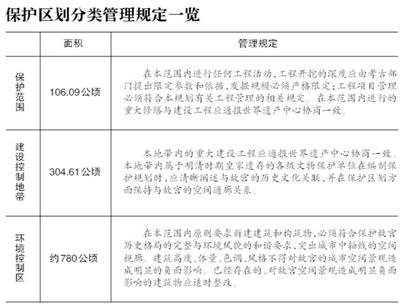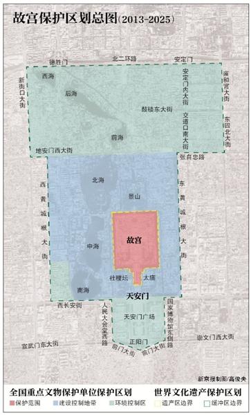 在规划期内,为实现故宫地上、地下的遗产价值承载要素与周边空间景观价值特征要素的完整保护,在保护区划类别上,《规划》于已有的保护范围、建设控制地带区划类型外,增设环境控制区,从而与故宫的世界遗产缓冲区相衔接,填补缺失的管理规定。