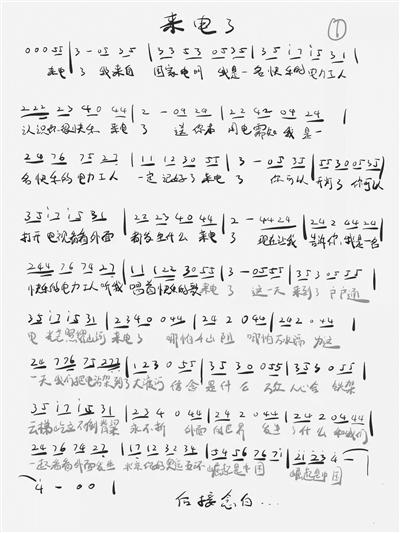 1月5日,四川电力的官方微信公众号上展示了《来电了》的乐谱稿第一页。北青报记者对比了《来电了》第一页和《Hello!》两首歌的乐谱,发现两首歌在多个小节上完全一致。
