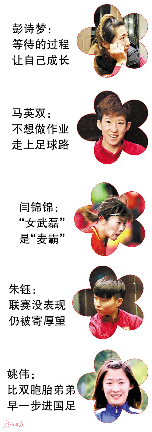 和朱钰一样,姚伟也是5朵“小花”中还未获得上场机会的两名球员之一。她与足球结缘,也与踢球的弟弟有关。姚伟说:“爸爸喜欢足球,他先让弟弟去踢,因为我每次放学都会等弟弟,就在场边看他训练。后来,教练就让我也跟着踢踢……真的很偶然,但当时的选择挺对的。”后来,姚伟一度比姚道刚踢得还好,当了球队队长。