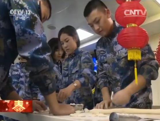 在训练间隙,官兵们在水兵餐厅挂起灯笼,贴上了福字,围成一圈准备过节吃的饺子,面对记者镜头,他们向家人和祖国表达了衷心的祝愿。