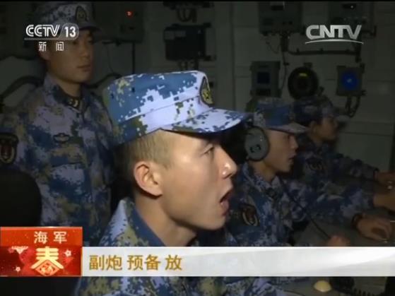 在海疆中巡逻的海军东海舰队西安舰编队官兵,用演练的方式来度过新春佳节。