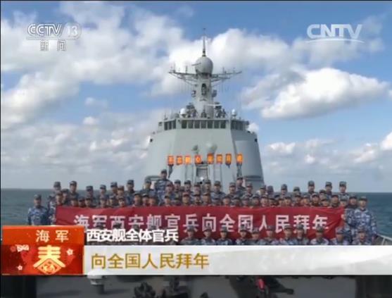 西安舰全体官兵:海军西安舰官兵祝全国人民新春快乐。请祖国人民放心,我们一定坚决捍卫领土主权和海洋权益。