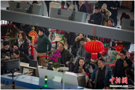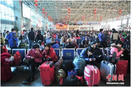 2月4日,候车大厅坐满旅客。中新社记者 刘冉阳 摄