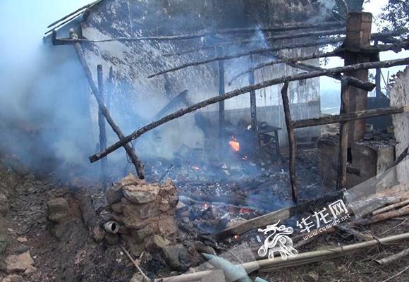 灶房被大火烧成一片废墟。 通讯员 王敏 摄