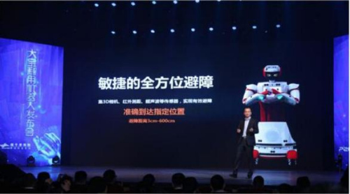 “大宝”具备SLAM定位导航算法在内的一整套完整的视觉及智能判断系统,通过行走控制单元、行走决策单元、功能任务单元等三个主要的子系统,解决自主建图、路径规划与自动避障等机器人自主行走的应用难点。借助3D相机、红外测距、超声波等多个传感器,大宝可实现全方位避障,避障范围准确至3CM-600CM。最高行动速度下,600CM范围内开始探测避障并规划路线,更为神奇的是,即使是遇到玻璃幕墙,“大宝”也可以照样避开。