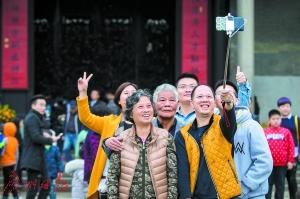 来自南京的张女士一家五口进了陈家祠之后就分头参观,她负责推轮椅带85岁的婆婆游览。在后进正厅,她说看到这些很有特色的古建筑之后“很震撼”,同时很欣赏陈家祠内到处设有无障碍通道,大大方便了坐轮椅的老人家。她还说,购票进场时,老人家是从绿色通道进入的,不用排很长的队。他们一家是专门来广州旅游的,参观完陈家祠之后,还打算参加珠江夜游。