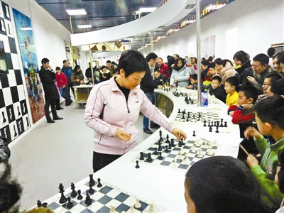 下午场是谢军夫妇到场,每次与11位棋迷开始车轮战,其中既有初学者,也有学棋多年的小学生以及成年人,一位已经学国际象棋6年的小同学说他去年就来过,觉得受益良多。