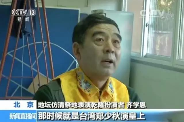 说起扮演皇帝的囧事,齐学恩能回忆起很多,如龙袍里的裤腰带松了,裤子差点掉下来;坐在轿子里,遇上熟悉的朋友四哥四哥地叫着……“站在祭台上,每一个细微动作都会被放大,被观众看到笑话。只要穿上龙袍,我就得时刻警惕着,包括神情,保持威严。”