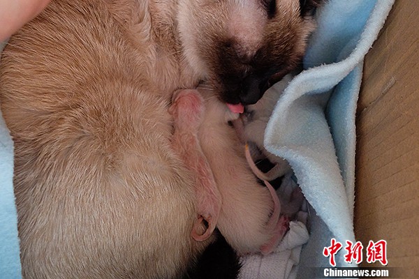 母猫和三孩子享受着后排吹暖风的待遇,毕竟还在“月子地”,一路上还的给吃好喝好,这样奶水才充足。