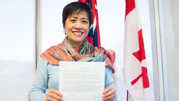 这项议案12月5日提交省议会后,黄素梅团队在去年12月19开始征集签名请愿书,目标是在今年2月15日达到10万份。黄素梅说,她希望通过这一活动争取加拿大各界支持,而获得10万签名对推动议案也会起到很好的舆论作用。