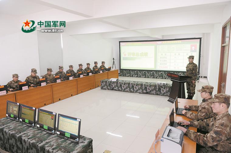 该旅士官选取评审现场,评委正在通过计算机评审系统为参选士官打分。 朱 岩摄